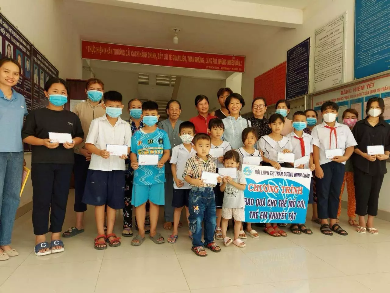 Dans le cadre de ses actions solidaires, l’association Hội LHPN Thị Trấn Dương Minh Châu, avec l’aide de l’AOAVN, poursuit son engagement auprès des personnes vulnérables de la communauté. À travers deux programmes distincts mais complémentaires, l’association apporte son soutien aux femmes en situation de handicap ainsi qu’aux enfants défavorisés.